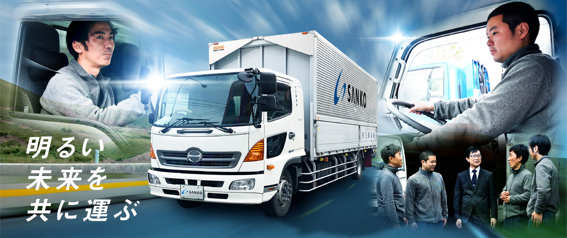 有限会社三興運輸は、「環境に優しい運送事業」をテーマに「安全確実」・「親切丁寧」・「真心こめて」全力で突き進んで参りました。